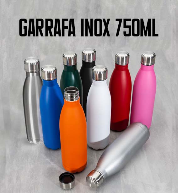 NICKLAUS. Garrafa em aço 91% inoxidável com parede dupla isolada a vácuo e botão que facilita sua ab
